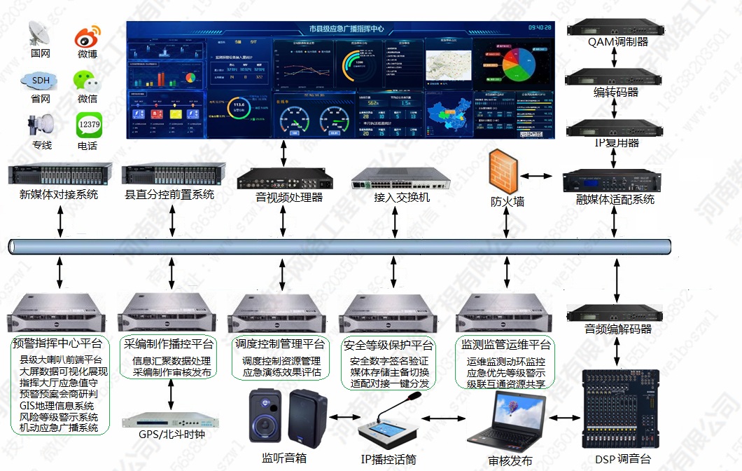 1.接收IP、DTMB、DVB-C、FM、衛星接收機、DVD、USB、話筒等信號,可在面板與網管中設置輸入信號源的優先級,自動檢測切換信號源,并在前面板上有明確的標注。